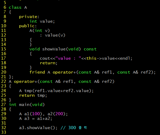 일단 연산자 오버로딩을 사용하기 위해서는, 다음과 같이 오버로딩을 원하는 연산자 함수를 제작하면 됩니다.